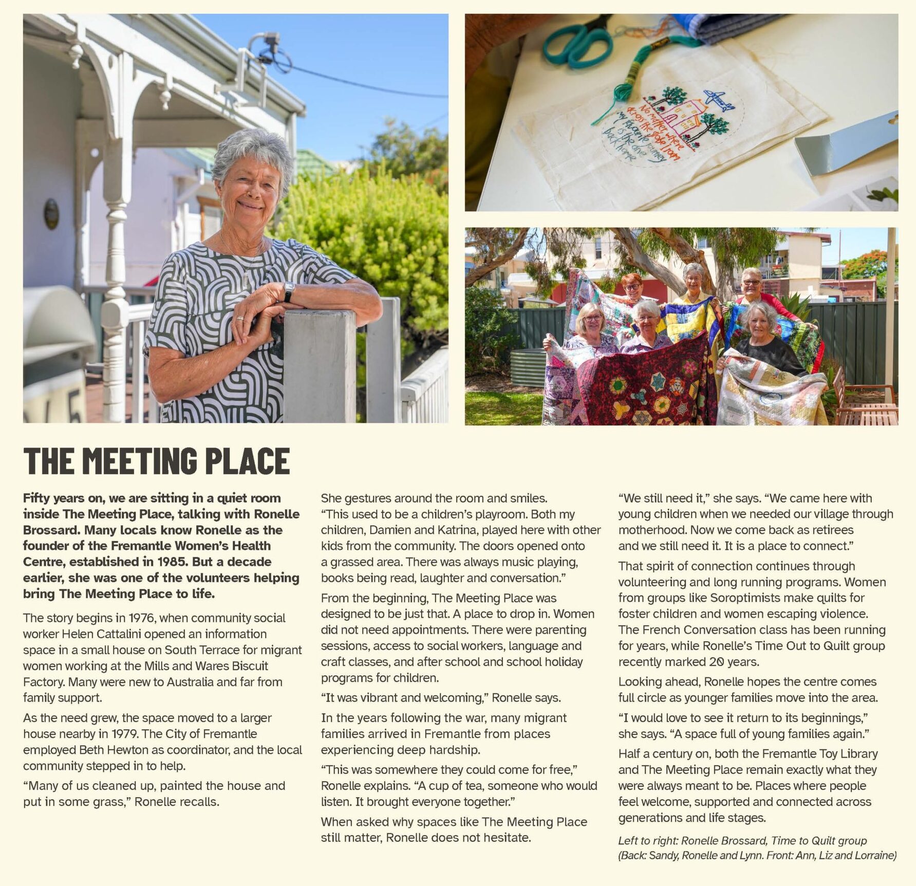 Free The Meeting Place 50th Anniversary Join us on Tuesday 12 May 2026 for an afternoon tea to celebrate the Centre! From humble beginnings to a South Fremantle… Tuesday 12 May The Meeting Place