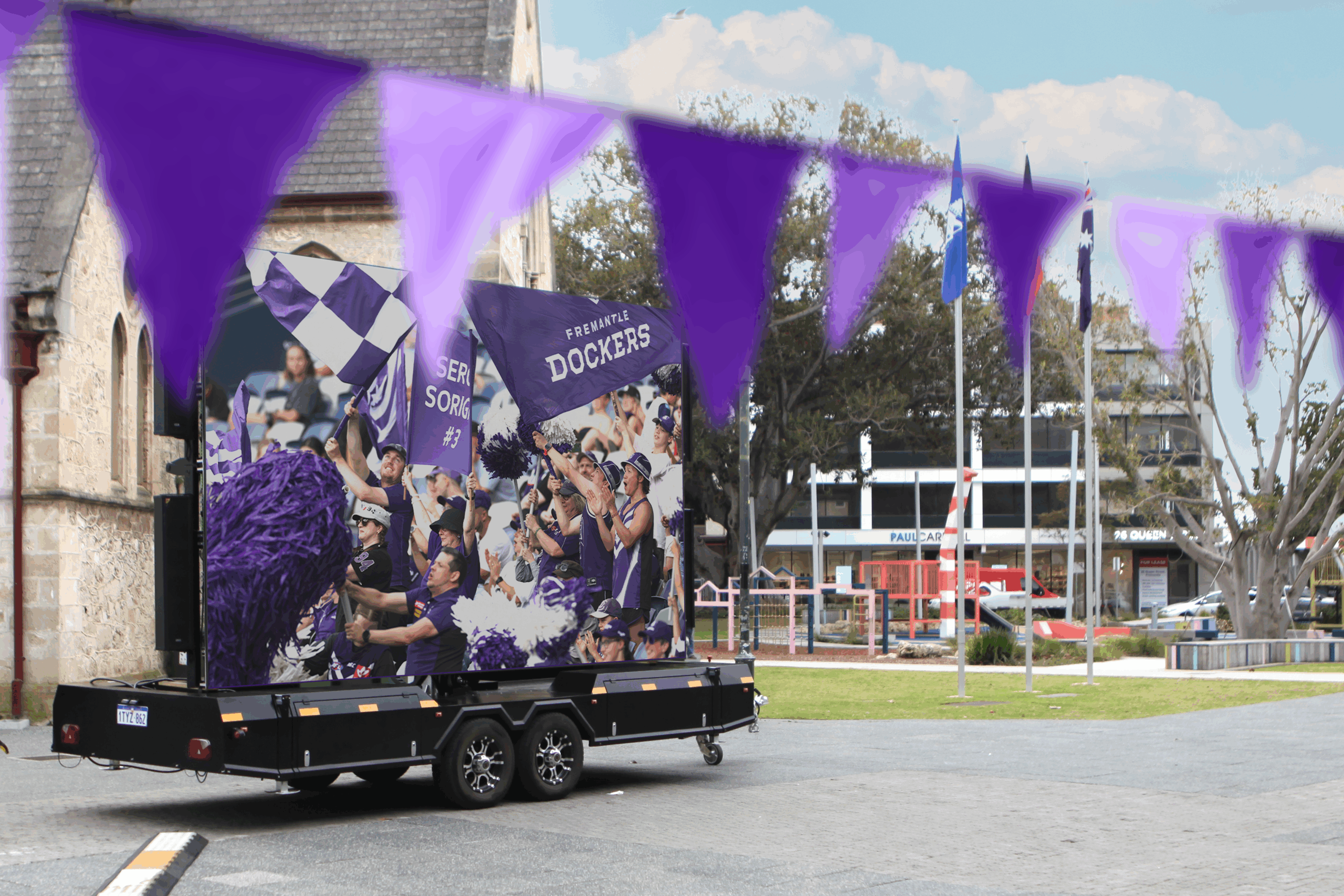 Date 27 August 2025 Category Media release Topic Business and investment To celebrate and support the Fremantle Dockers playing in the 2025 AFL Finals Series, a purple haze is spreading over the City of Fremantle. To celebrate and support the Fremantle Dockers playing in the 2025 AFL Finals Series, a purple haze is spreading over the City of Fremantle. Starting this week several prominent buildings in Fremantle will be lit up by purple lights, including the Walyalup Fremantle Arts Centre, Victoria Hall and the Moores Building in the West End. From next week the Cappuccino Strip will be wrapped in purple decorations and draped in Dockers bunting. The City and the Fremantle Chamber of Commerce are encouraging local businesses to join in the finals festivities by dressing up their shopfronts. Many of Fremantle’s pubs, bars and restaurants are preparing to host Dockers-themed watch parties. For fans who can’t get a ticket to the game, the best place to be for the Elimination Final on Saturday 6 September is the live site in Walyalup Koort, in the heart of Fremantle’s civic centre. There will be a big screen, DJ and face painting, with viewers encouraged to pack a picnic or grab some takeaway food and secure their spot on the lawn. The live site will be activated for every finals game the Dockers play. Fremantle Mayor Hannah Fitzhardinge says she’s quietly confident the Dockers can get it done. “Ever the optimist, I think they can go deep into September. “They have the talent and dogged determination to get them there and whatever happens, they’ll do us proud,” Mayor Fitzhardinge said. Follow the City of Fremantle socials for more exciting finals activations over the next few weeks. As always, the City will be getting behind the Fremantle Dockers women’s team, who will host North Melbourne in Round 3 of the AFLW season, at Fremantle Oval this Sunday at 1.05pm.